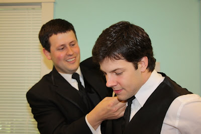 Ryan's dad (Best man) helping him out bu lint rolling him.