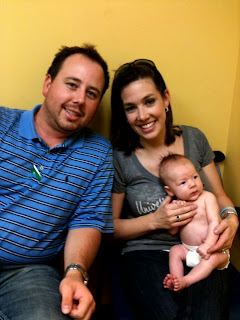 We took Payne to the doctor on Friday afternoon for a weight check and his two month shots. He weighed 10 lbs 11oz which was in between the 25-50 percentile and he was 22.64 inches long which was the 50 percentile. So we are now an average baby! He also did great during his shots. He only cried for about a minute and then I was able to hold him and he quit crying! Momma did good too, I didn't cry like I thought I would. He has been pretty fussy since he had the shots, but I think we are on the up swing now. He will be 2 months on Wednesday, so I will give the complete month update then. For now we are glad that he is growing and is healthy!